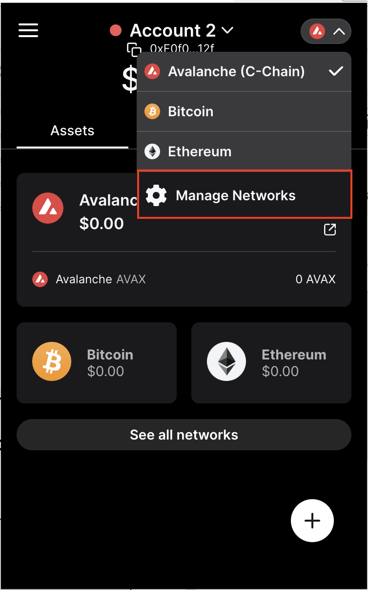 Now, open the Core browser extension and navigate to the screen to add a new network.