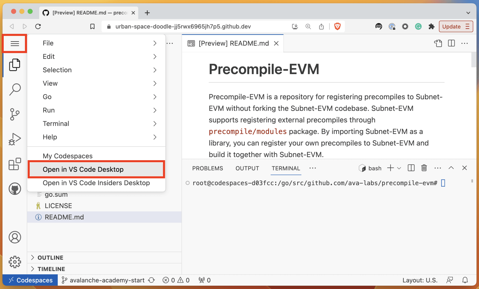 In this course we will run the Avalanche Starter Kit in a hosted environment on Github. This is the quickest way to get started.